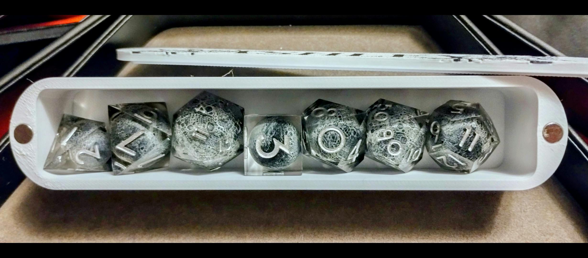 This new set of resin dice has a moon inside of each die to recreate a unique lunar style!